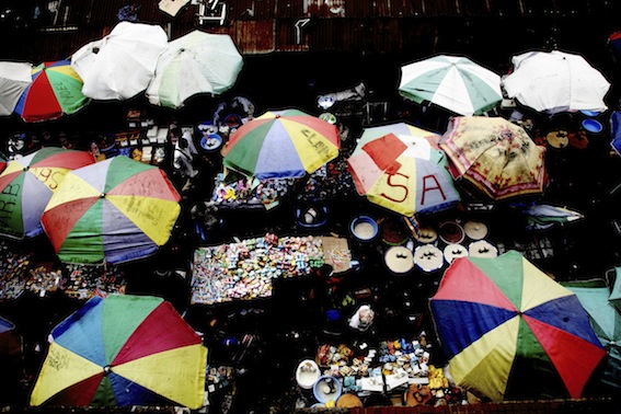 Galleri Flach has the great honour to inaugurate 2014 with the exhibition ”Mutation” of the artist Kiripi Katembo Seku. It is a series of photographies taken in the artist’s hometown Congo Kinshasa, showing a bustling urban centre with a focus on both everyday details and abstract structures. In the photographies the beholder follows the street life with market stalls, laundry tubs and washing lines from a bird’s eye perspective. Umbrellas, fruit stands, and clothing in strong, clear and contrasting colors are mixed with the streets’ and the buildings’ shifting colors in brown and gray. Kiripi Katembo has been exhibiting extensively in Europe, North America and Africa in recent years and the series “Mutation” has previously been shown in Belgium, France, Gabon and Congo – Brazzaville.
