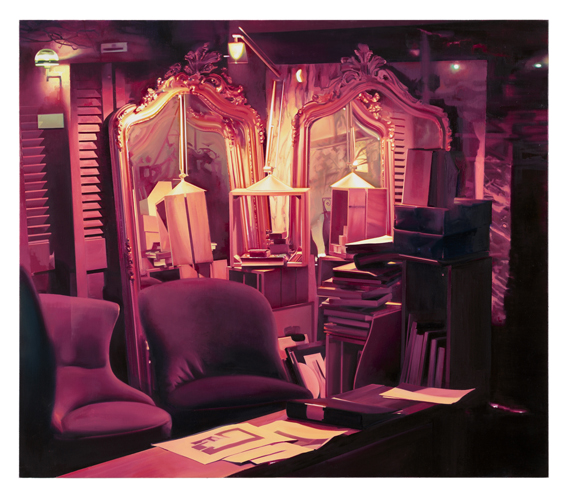 We have the great pleasure to present Pauliina Pietilä’s first solo exhibition at Galleri Flach. It contains six new paintings, all based on an overall theme of creating a suggestive atmosphere trough a special light. In the paintings of Pauliina Pietilä, the light from shop interiors, residential houses and various sources in urban environments that emerge at dusk or at night, has always played an important role. Even as a child, growing up in Ilmajoki in Finland, where the darkness dominated the surroundings most of the year, she was fascinated by the bright spots in the landscape that became especially prominent travelling by car in the darkness among the area’s scattered villages and small communities.